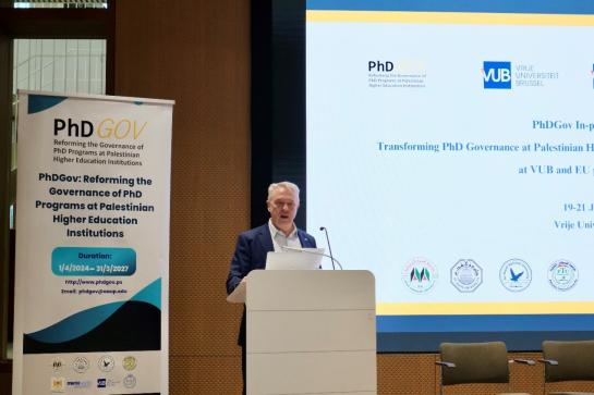 On the afternoon of 21 January 2026, Prof. dr. Jan Danckaert, Rector of Vrije Universiteit Brussel (VUB), attended the closing session of the PhDGov in-person training held at VUB in Brussels.