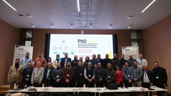 The PhDGov project aims to enhance the governance and management of PhD programs across Palestinian Higher Education Institutions. One of the core activities is to provide training for PhD supervisors and university policy makers on doctoral education.