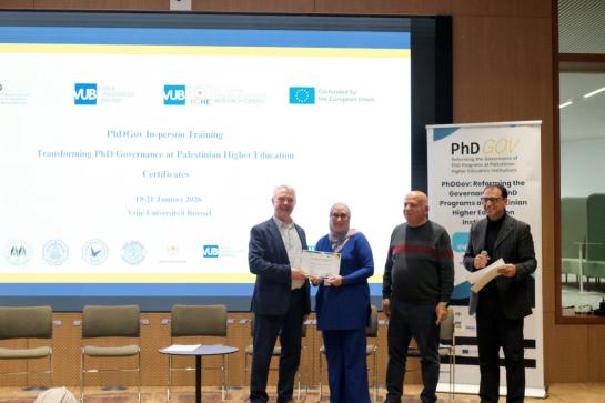 The PhDGov in-person training was officially launched on 19 January 2026 at Vrije Universiteit Brussel in Brussels, hosted by the EU–China Higher Education Research Center (ECHE). The training brings together representatives from Palestinian higher education institutions and European partner universities for three days of exchange and capacity-building activities.